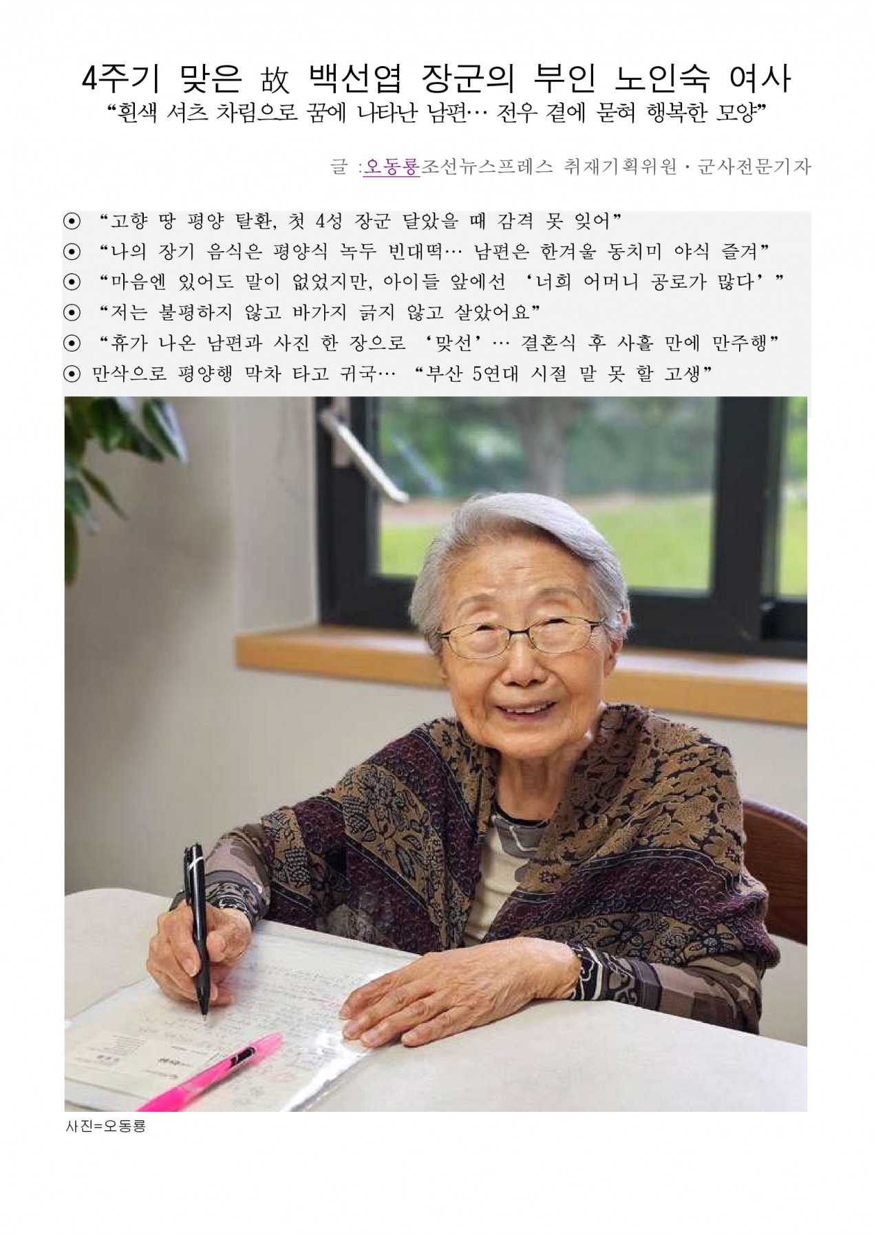 4주기 맞은 고 백선엽 장군의 부인 노인숙 여사(2024.6.23, 조선일보에 게재) 페이지 정보 작성자 최고관리자 댓글 0건 조회 408회 작성일 24-06-23 08:34 목록 본문 이전글보훈부-은행연합회, 국가유공자 소원성취 '이루어드림' 프로젝트(2024.6.23, 연합뉴스에 게재) 24.06.25 다음글'백선엽 장군의 전쟁철학과 한미동맹' 주제 국제학술회의. 24일 개최(2024.6.21, 파이낸셜뉴스에서 게재) 24.06.21 댓글 0 댓글목록 등록된 댓글이 없습니다.